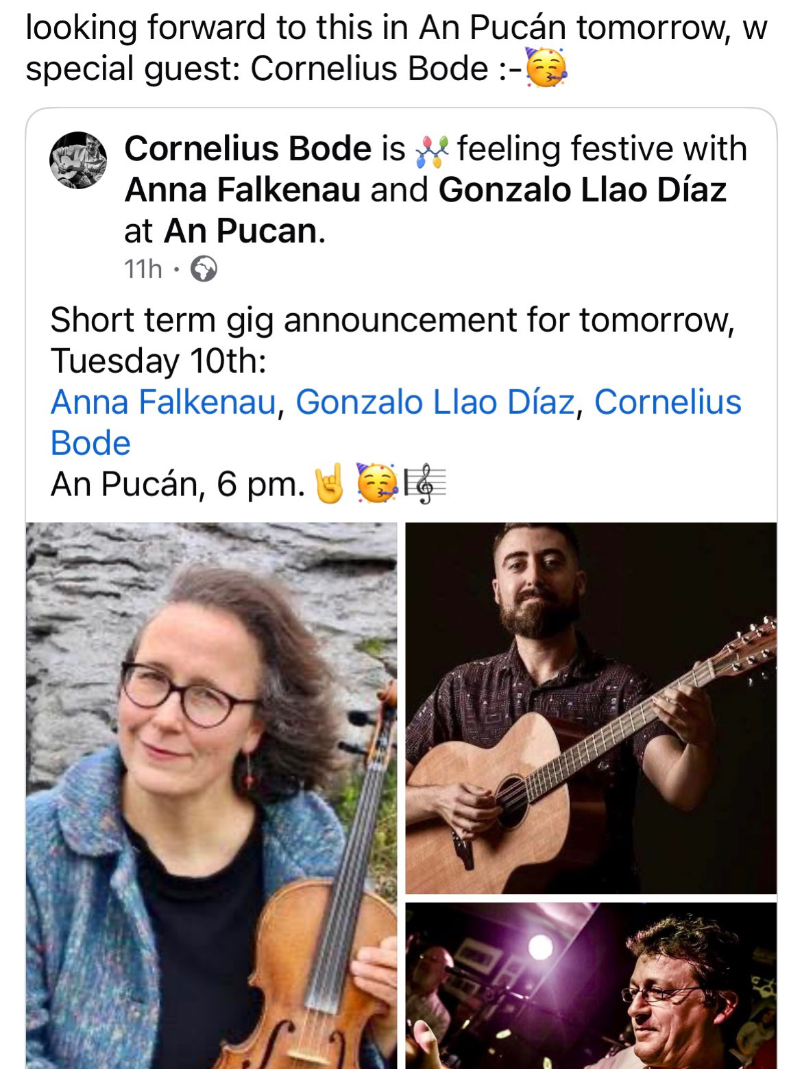 looking forward to this in An Pucán tomorrow, w special guest: Cornelius Bode :-🥳