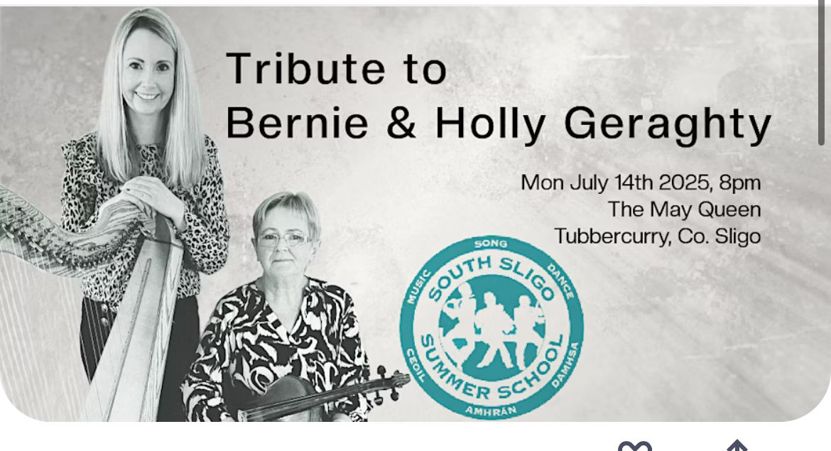 Absolutely delighted to take part in a very special concert taking place at this year’s South Sligo Summer School in Tubbercurry in Honour of the wonderful Bernie and Holly Geraghty, two of my most favourite people and musicians! The May Queen, Monday night, 14 July. You can reserve your tickets here: https://www.eventbrite.ie/e/tribute-to-bernie-holly-geraghty-tickets-1280898755659